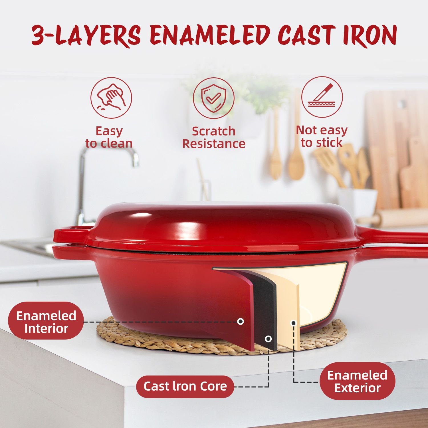 Enamel cast iron soup pot with handle, suitable for ceramic, gas, induction cooker or barbecue grill Enamel cast iron soup pot with handle, suitable for ceramic, gas, induction cooker or barbecue grill Enamel cast iron soup pot with handle, suitable for ceramic, gas, induction cooker or barbecue grill
