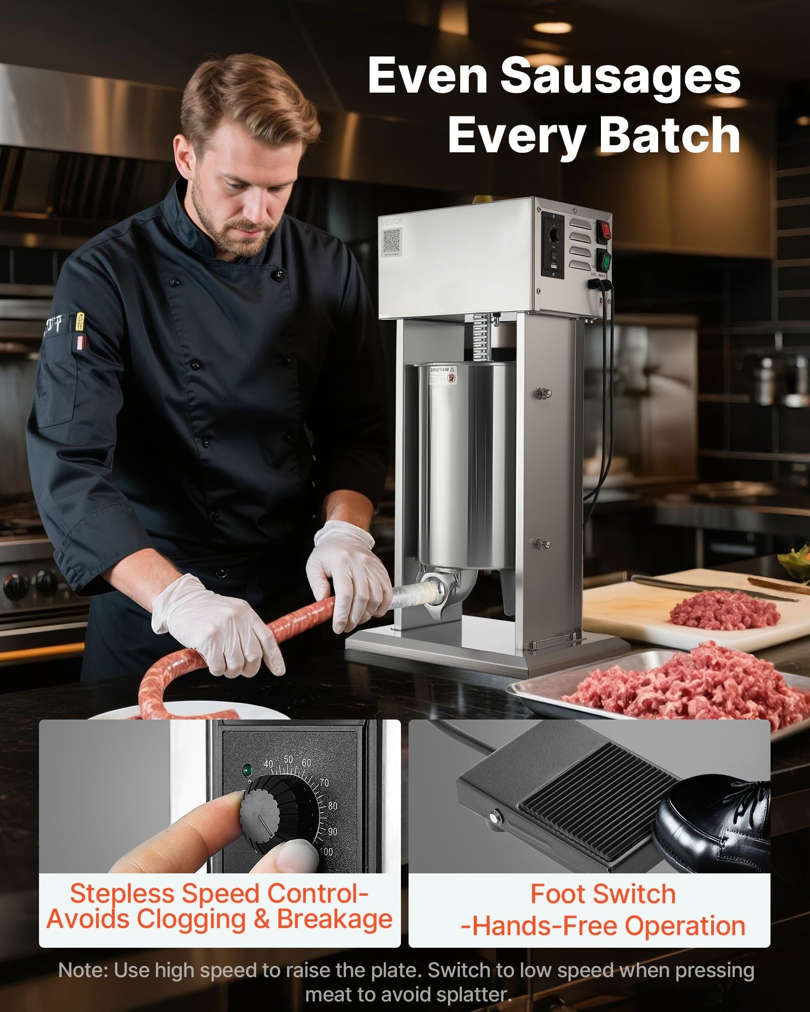 Home > Electric Sausage Stuffer, 25 LBS / 12 L Vertical Meat Stuffer, Stepless Speed Control and Foot Pedal