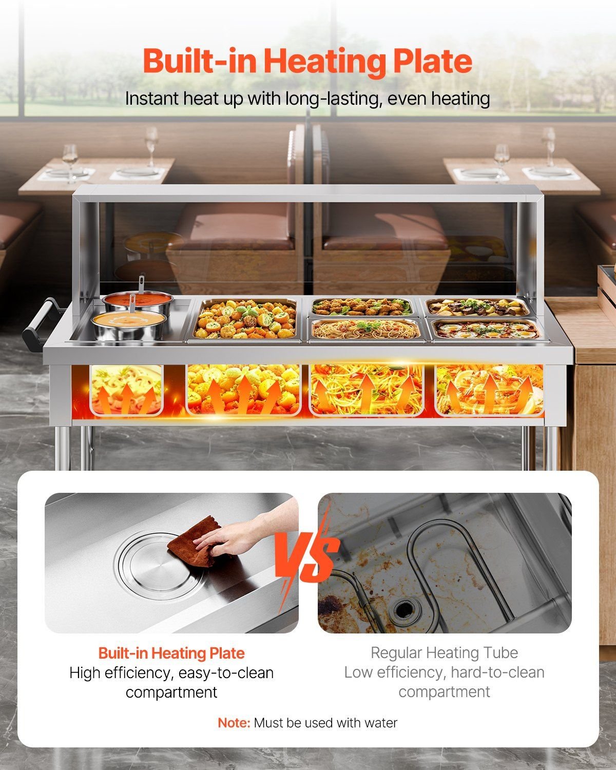 VEVOR Commercial Food Warmer, 5 Pans + 2 Pots Electric Steam Table, 1800W Professional Buffet Catering Food Warmer with Shield Undershelf Wheels VEVOR Commercial Food Warmer, 5 Pans + 2 Pots Electric Steam Table, 1800W Professional Buffet Catering Food Warmer with Shield Undershelf Wheels VEVOR Commercial Food Warmer, 5 Pans + 2 Pots Electric Steam Table, 1800W Professional Buffet Catering Food Warmer with Shield Undershelf Wheels